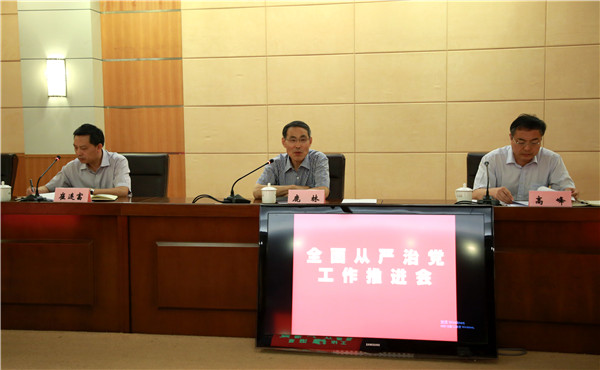 6月25日,根据党委部署安排,学校在图书馆学术会议厅召开全面从严治党工作推进会。党委书记鹿林、党委副书记高峰、纪委书记崔连富出席会议。学校全体正处级干部参加会议。