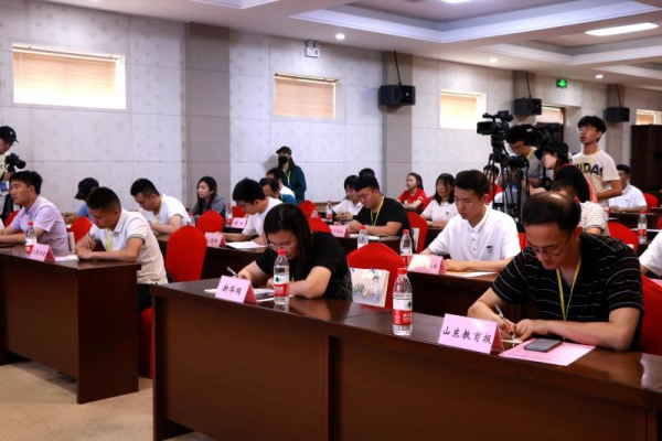 新闻发布会上,主办单位、承办单位、协办单位领导分别简要介绍本次赛事有关情况。媒体记者围绕比赛的组织筹备、目的意义、特色亮点等相关问题进行了现场提问。来自人民日报、新华网、山东电视台、山东教育电视台、大众日报、山东教育报、山东青年报、山东体育晨报社、中国山东网、大众网、闪电新闻、齐鲁网、党报头条、经济导报、中宏网、鲁网等16家媒体的记者参加发布会。发布会由学校对外合作办公室主任赵健主持。