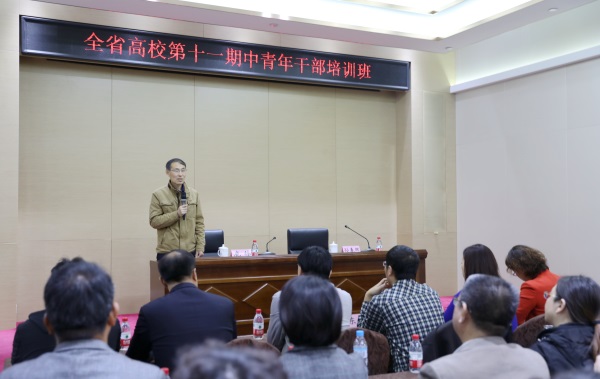 10月28日下午,全省高校第十一期中青年干部培训班学员到我校交流学习,学校党委书记鹿林作专题辅导报告,报告由山东师范大学干部教育培训学院院长、党校副校长孙春晖主持。