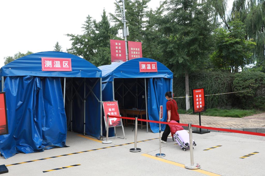 学生入校过程中按照疫情防控要求,在接受体温检测,主动出示健康码,合格后方可入校。工作人员对进入校园的学生及其行李喷洒消毒液消毒。保洁、保安和食堂职工等后勤工作人员工作时间将佩戴口罩。无特殊情况,学校避免接送人员进入校区,保证校内学生安全。