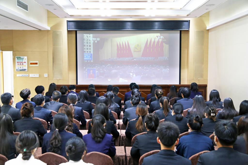 在观看现场,广大师生边收听,边做记录,认真聆听学习习近平总书记代表十九届中央委员会所作的报告内容,真切了解和感受中国共产党团结带领中国人民创造的伟大事业、取得的伟大成就和展现出的伟大力量。大家一致表示,收听收看党的二十大开幕会,内心感到无比激动自豪,同时备受鼓舞,将以实际行动在工作、学习和生活中贯彻落实党的二十大精神,为全面建设社会主义现代化国家、全面推进中华民族伟大复兴而团结奋斗。