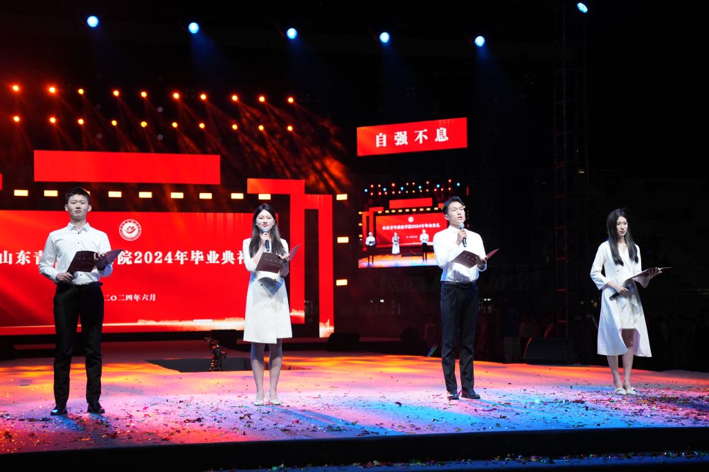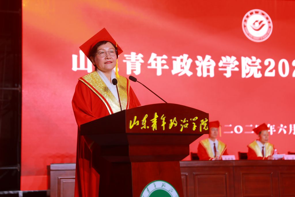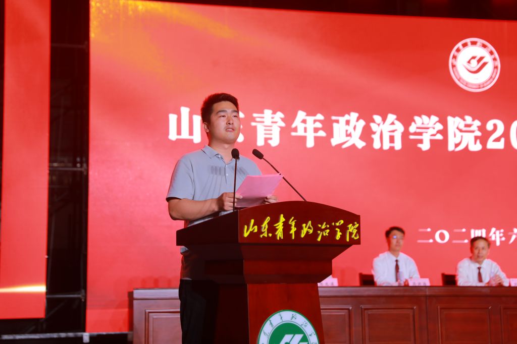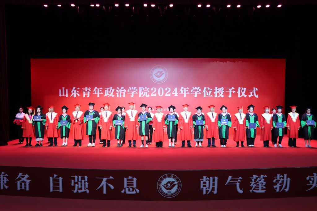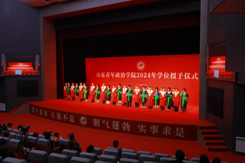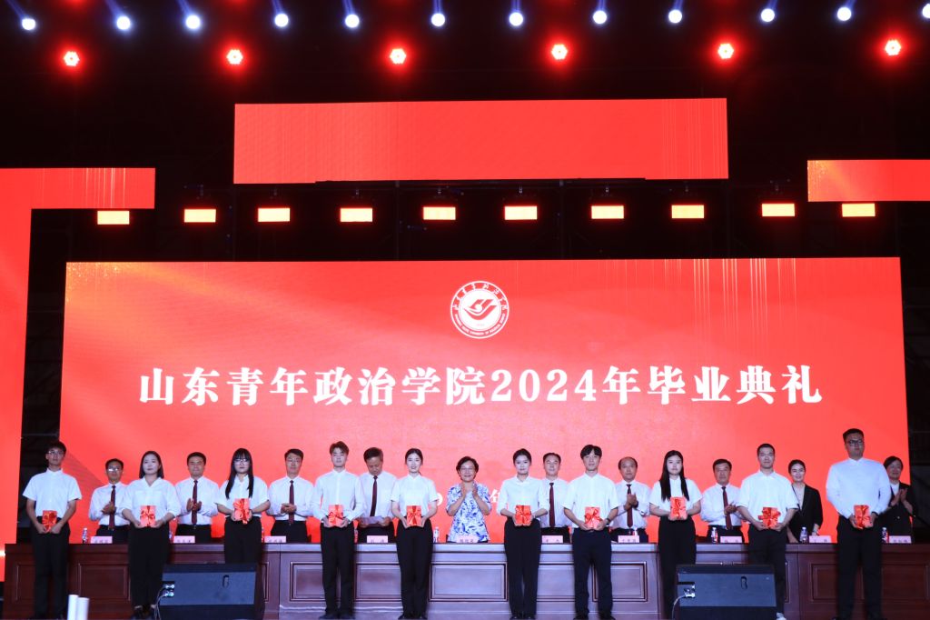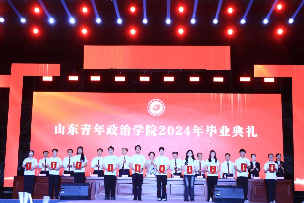 党委副书记、院长辛杰宣读《山东青年政治学院关于准予赵椿婷等2024届本科毕业生毕业的决定》。党委委员、副院长于秀国宣读《共青团山东青年政治学院委员会关于表彰2024年“大学生志愿服务西部计划”优秀志愿者的决定》《山东青年政治学院关于表彰2024届省级优秀毕业生的通报》《山东青年政治学院关于表彰2024届校级优秀毕业生的决定》。学校领导依次向优秀志愿者代表、优秀毕业生代表颁发荣誉证书。