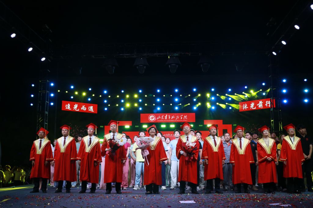 毕业有“礼”,告别有“爱”。典礼现场,原创毕业MV《我的山青》,一张张生动的画面展现着2024届毕业生在山青度过的每一个春夏秋冬,一帧帧珍贵的影像印证着2024届毕业生和山青共同全力以赴、追逐梦想的荣光时刻。歌曲串烧《想见你想见你想见你》《不说再见》《那些年》《凤凰花开的路口》,让现场毕业生们忆起了在山青的美好时光,道出了毕业学子对青春的告别与珍重,对母校的不舍与眷恋。《篇章》《你曾是少年》《若月亮没来》,唱出了山青学子对梦想的坚定和勇敢,对未来的憧憬与热爱。各教学单位教师代表依次登台入场,用极具学院特色的方式表达着对2024届毕业生的依依不舍和美好祝愿,毕业生们一次次用热烈的掌声和欢呼声表达着对母校老师们的深情喜爱和赞美感激。