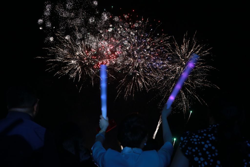 数载翩跹过,离别在须臾。毕业生代表以朗诵形式深情致献词。校领导、教师代表、学生代表集体演唱《送别》,祝愿毕业生们芳华待灼,砥砺奋斗,笃行致远。教师代表、班主任、辅导员、宿舍管理员、保安保洁等集体登台向全体毕业生挥手道别。离别的惆怅、感恩的深情、殷切的希望、美好的祝福交织在一起,典礼在绚丽多彩的烟花中达到高潮。