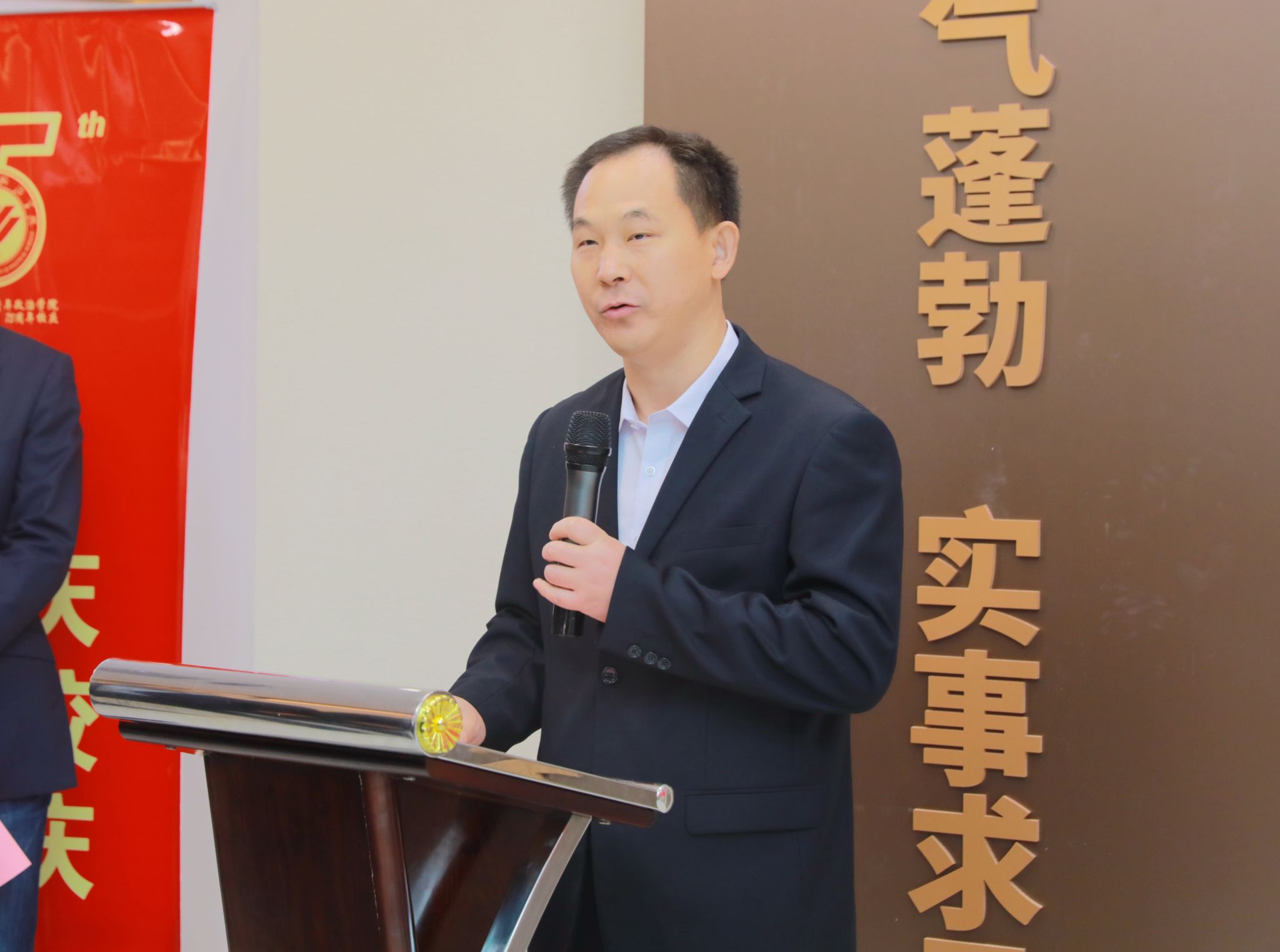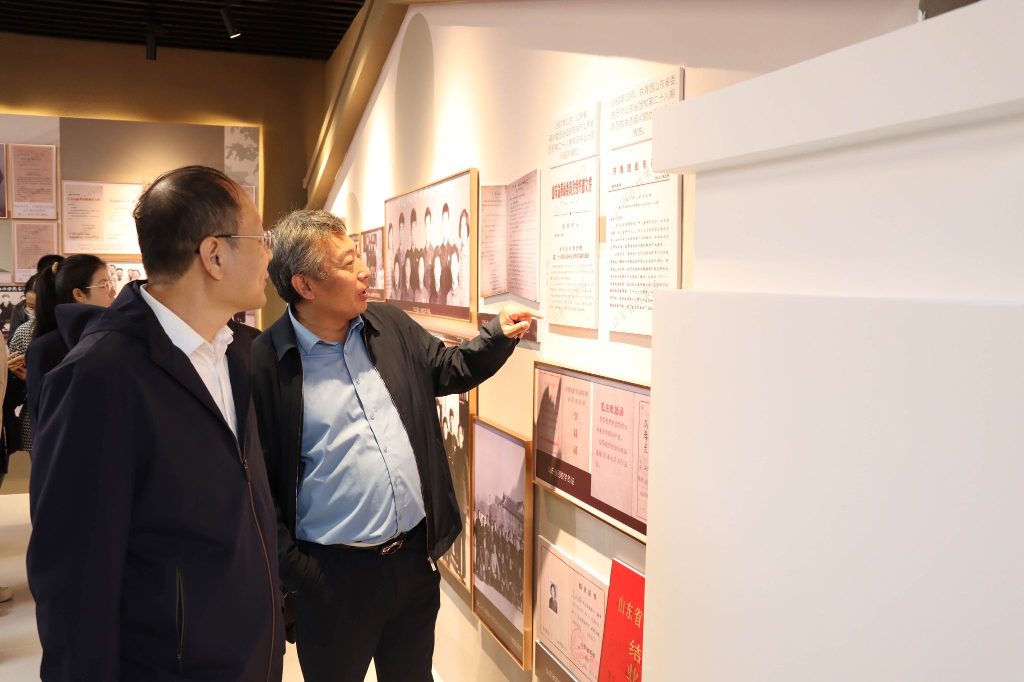 辛杰在致辞中代表学校向75年来支持帮助学校发展进步的领导、校友和社会各界人士表达衷心的感谢!向75年来为学校建设夙兴夜寐、焚膏继晷的师生员工表达崇高的敬意!向为校史馆建设付出辛勤劳动的所有人员表达诚挚的慰问!他表示,过去、现在、未来是相通的,看得见多远的过去,就能走得到多远的未来。校史馆以时序为经,以成就为纬,以文化为魂,以重要事件为亮点,集中呈现了山东省团校、山东省青年管理干部学院、山东青年政治学院三个时期艰苦创业、不断攀登的发展历程,传递着学校的教育理念和办学精神,生动再现了山青人顽强拼搏、敢于担当的奋斗足迹,是山青人精神栖居的家园。每一处展陈,都是对峥嵘岁月的重温和回顾;每一张珍贵的老照片,每一样泛黄的老物件,都定格了山青人前进路上的身影。