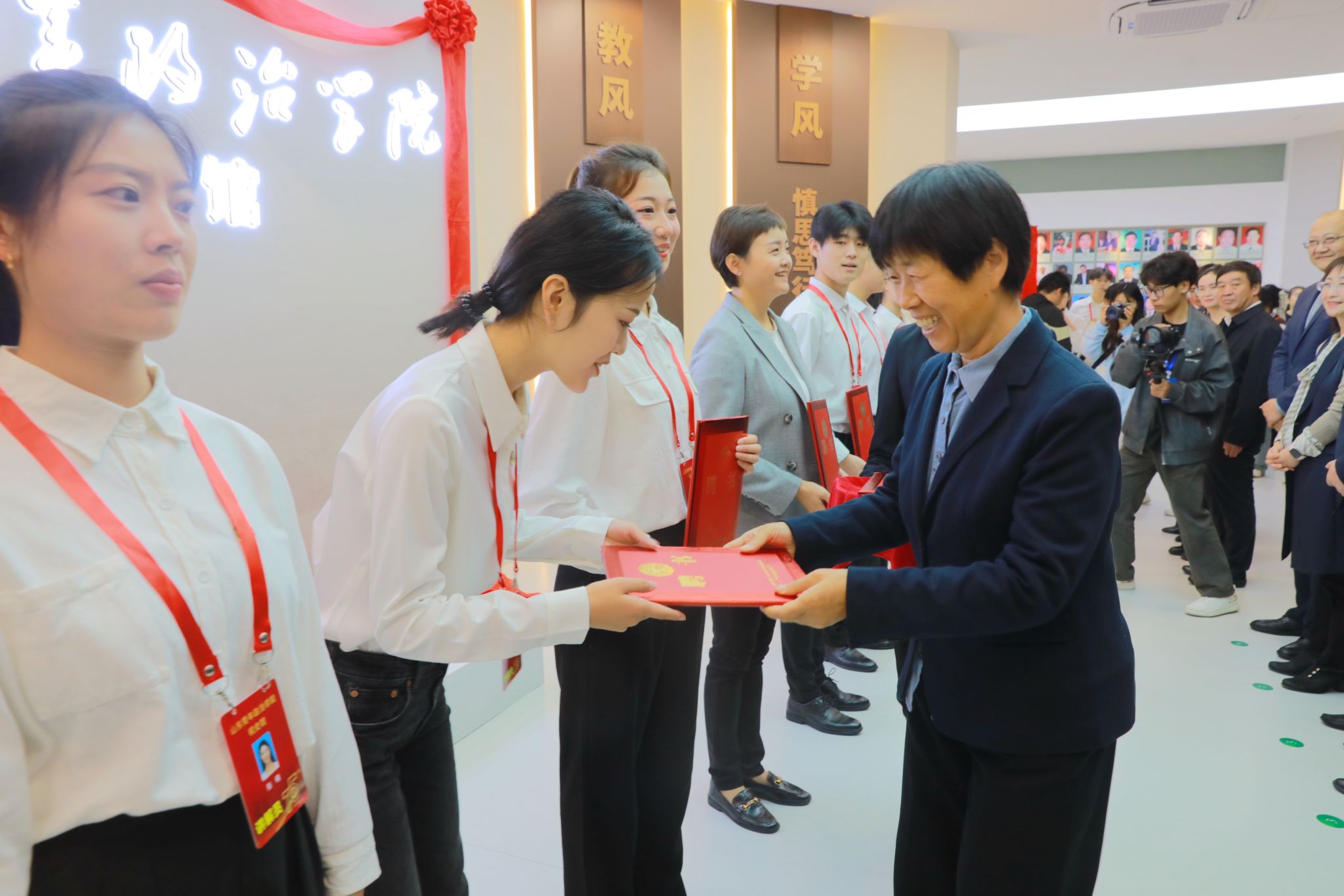 学校党委委员、副院长李玉英为校史馆师生讲解员代表颁发聘书。